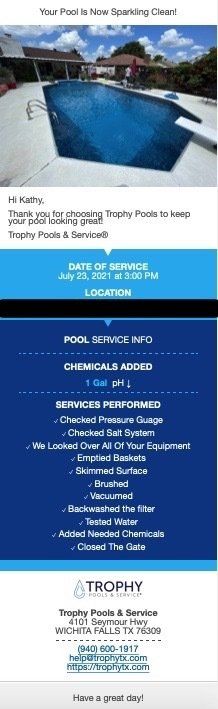 - Bonus: as a regular service customer, you have Trophy as your pool company; your repairs are first in line. Our first priority is to our regular service customers.
